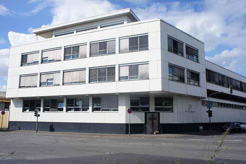 Hinter der streng klassizistischen Fassade wurden bis in die 1970er Jahre Ankerwicklungen für Elektromotoren hergestellt.