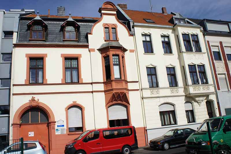 Hier steht seit 1926 das einzige Genossenschaftsheim Kölns. Der größte Raum ist der „Friedrich-Ebert-Saal“ und diente der Genossenschaft als Versammlungs- und Feierstätte.