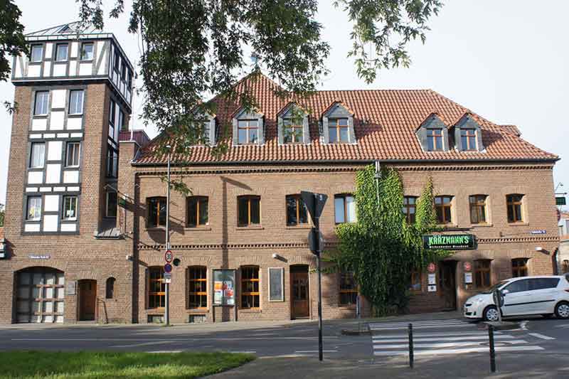 Es handelt sich um ein dreistöckiges Mietwohnhaus mit roten und gelben Backsteinen um 1900 vom Gaststättenbesitzer Johann Zimmermann erbaut. 1955 ersetzte Sohn Gerhard den Dachstuhl durch ein weiteres Wohngeschoss und baute die untere Etage zu zwei Ladenlokalen um. 2019 wurde ein neuer Dachstuhl, der ursprünglichen Form nachempfunden, zu Wohnzwecken errichtet.