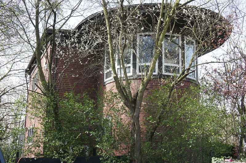 einziges Privathaus in Bickendorf. Im streng funktionalen Bauhausstil