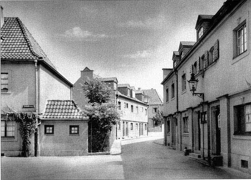 Hier hat sich ein Ensemble von sogenannten „Hausmannshäusern“ erhalten, die giebelständig und platzsparend für Handwerker um 1850 erbaut wurden. Hinter den Häusern lagen die Werkstätten und Stallungen.