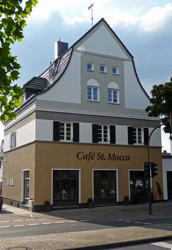 Eines der beiden imposanten Eingangshäuser mit hoch geschwungenem Dachgiebel ist das Café St. Mocca, eine Begegnungsstätte der besonderen Art mit viel ehrenamtlichem Engagement und behaglichem Ambiente. Kölns älteste Kaffeerösterei Schamong liefert den Kaffee. Es werden kulturelle und religiöse Events angeboten.