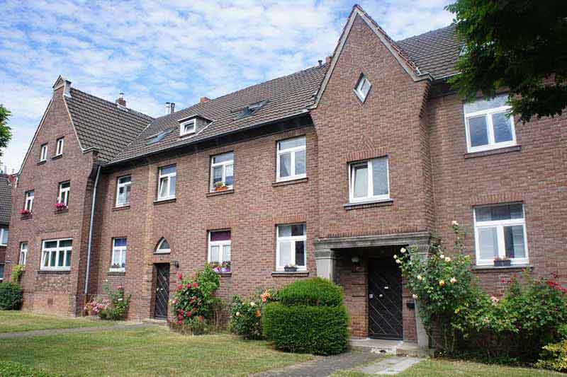 Typisch für viele Häuser der Siedlung ist die ornamentale Backsteinschichtung des niederrheinischen Expressionismus.