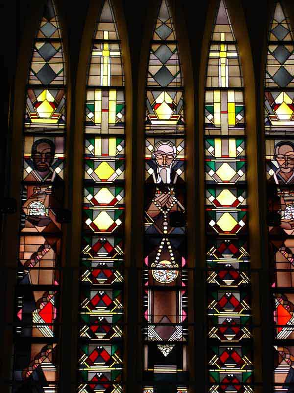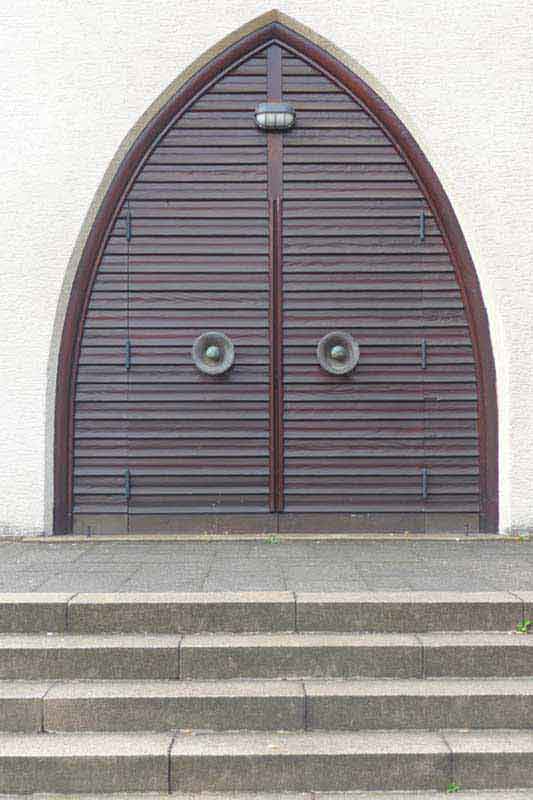 Die schmalen, hohen Lanzettfenster sind das auffallendste Gestaltungsmerkmal des Sakralbaus.