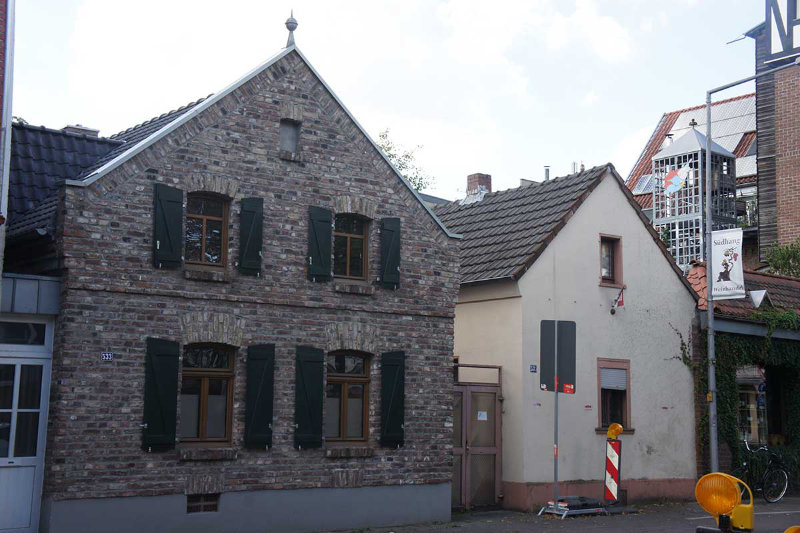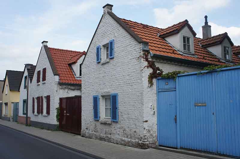 Die Lage in der Kurve und die unterschiedliche Ausrichtung der Giebel zur Straße lassen an dieser Stelle die letzten Merkmale des ursprünglichen „Rheinischen Haufendorfes“ erkennen.